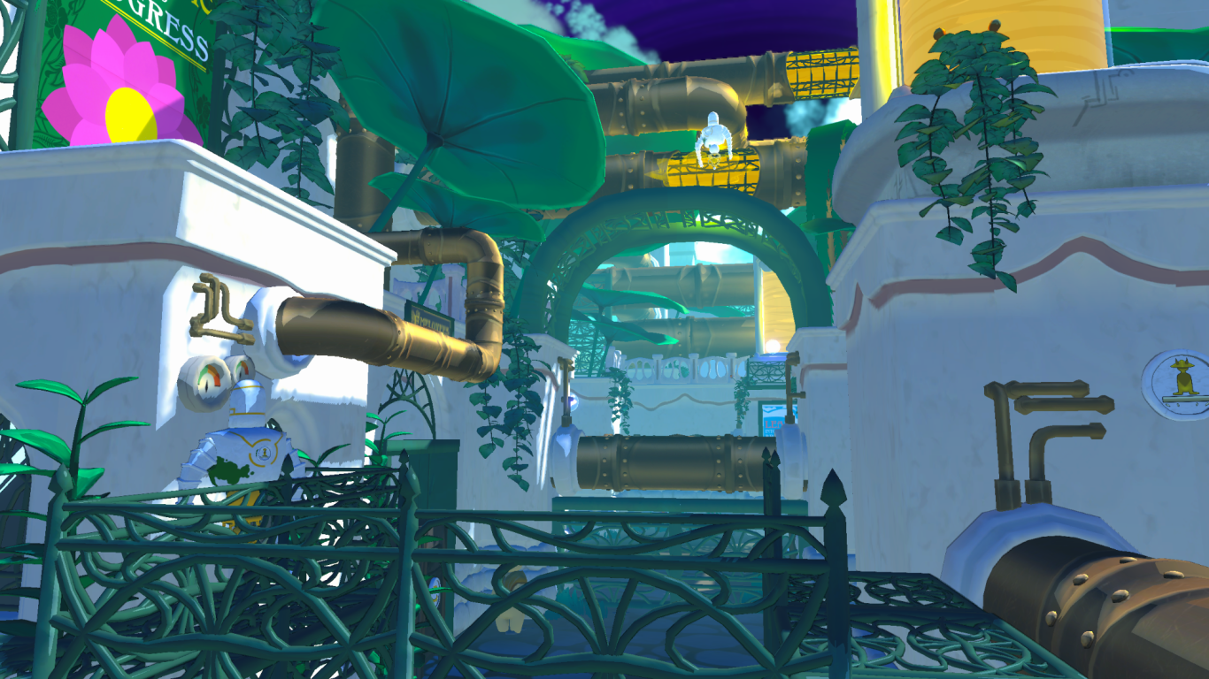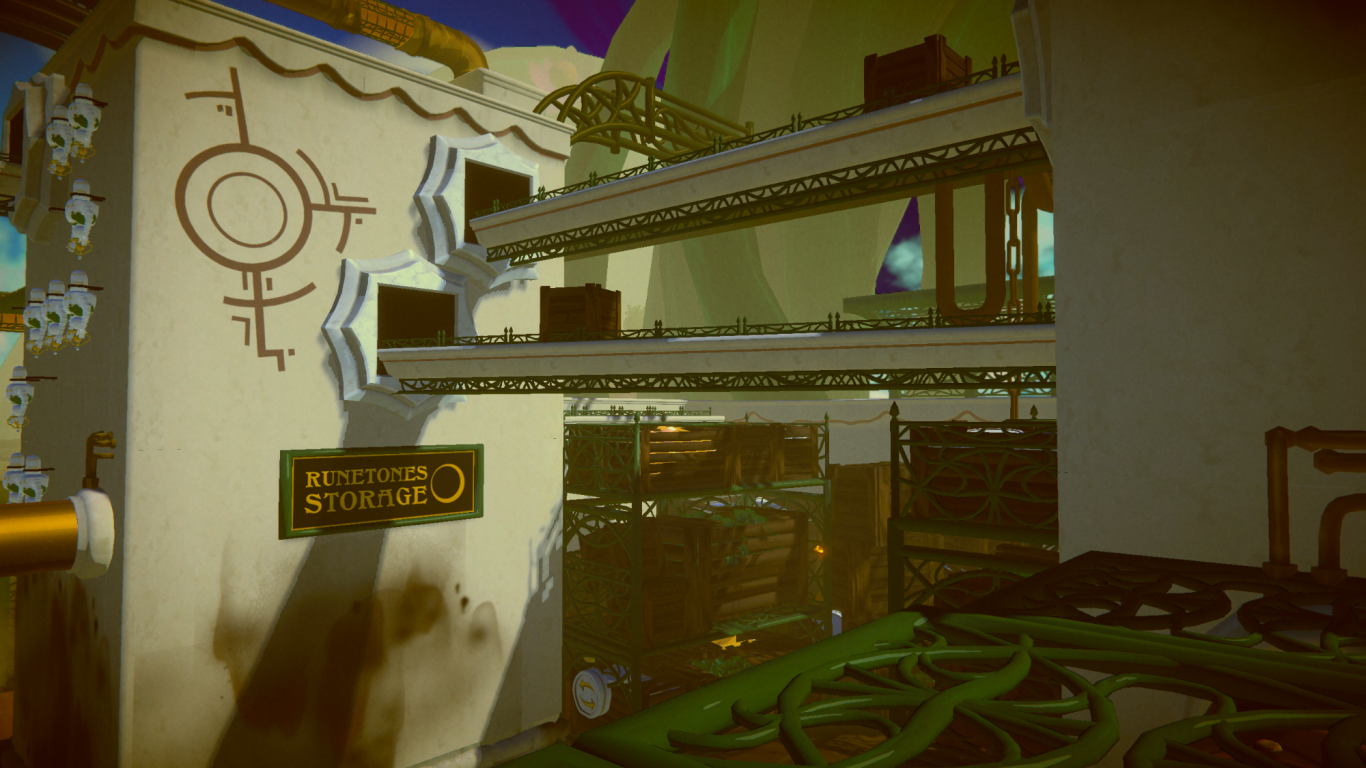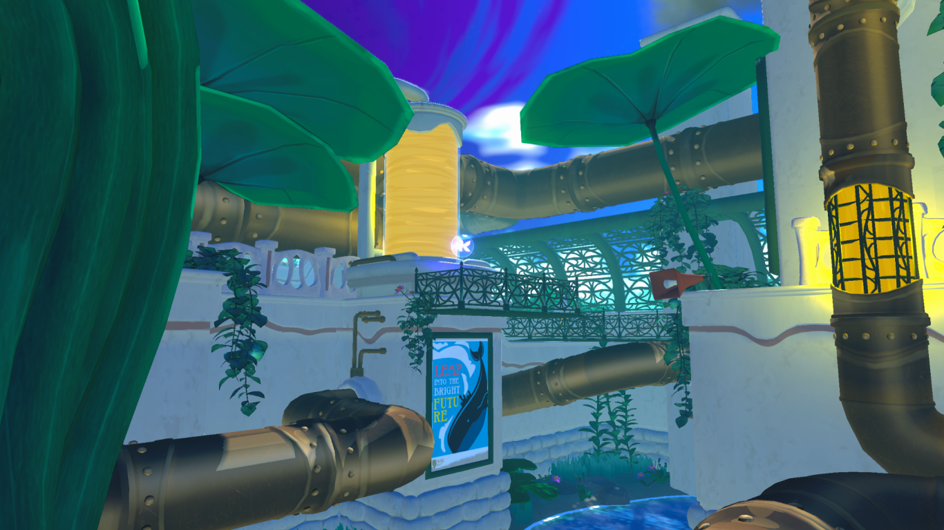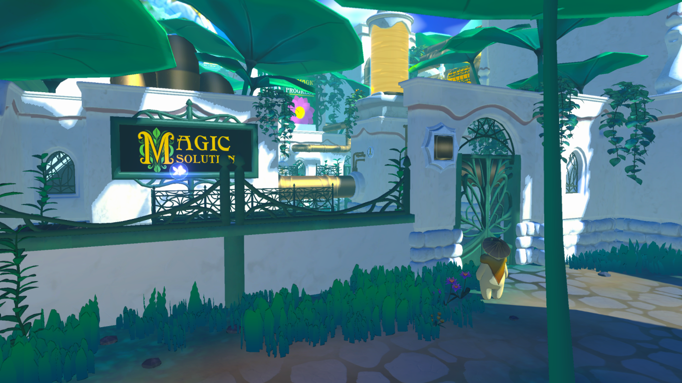 As the main character of the game, you have to explore the beautiful nature-filled world on the back of the giant whale you live on. The player's goal is to uncover the mysteries of the factory and the conspiracy surrounding the whale's impending death. As the game progresses, the player unlocks five skills that he can use to overcome increasingly complex puzzles and parkour sections. There are also NPCs in the world with which the player can interact to find out more about the world's history.