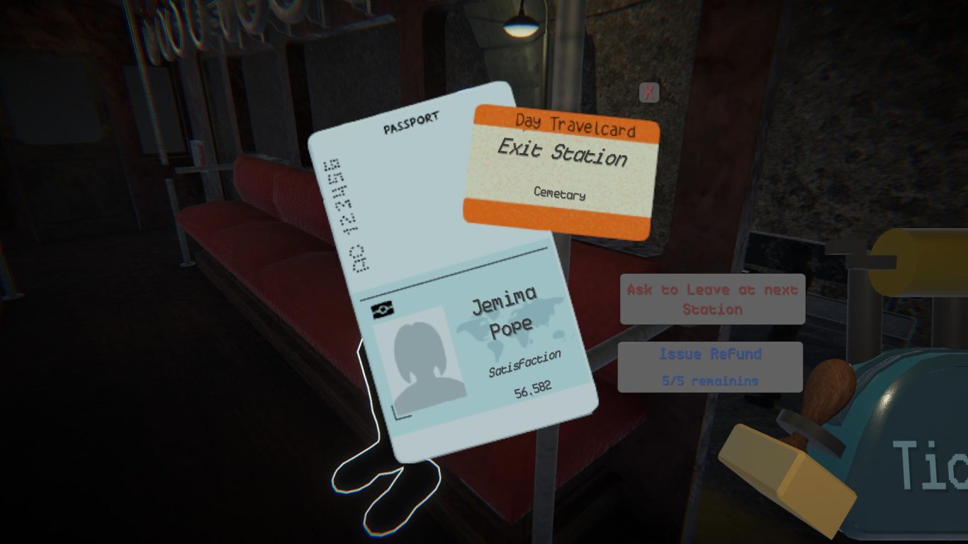 The Main Character of the Game is a nameless Subway Train Conductor who, after a mistake on his last shift, has been reassigned to the remote Railroad 9. This Railway is rumored to be haunted by Evil Spirits that try to sabotage Trains and in a Moment of uncertainty, kill all of their Passengers and the Conductor. You, now working on this Railroad in your Train, must try to keep your Passengers satisfied by fixing any Malfunctions caused by the Spirits. If you figure out who of your Passengers are Spirits, you can purge them using a Charm your Grandmother gave you for your protection.