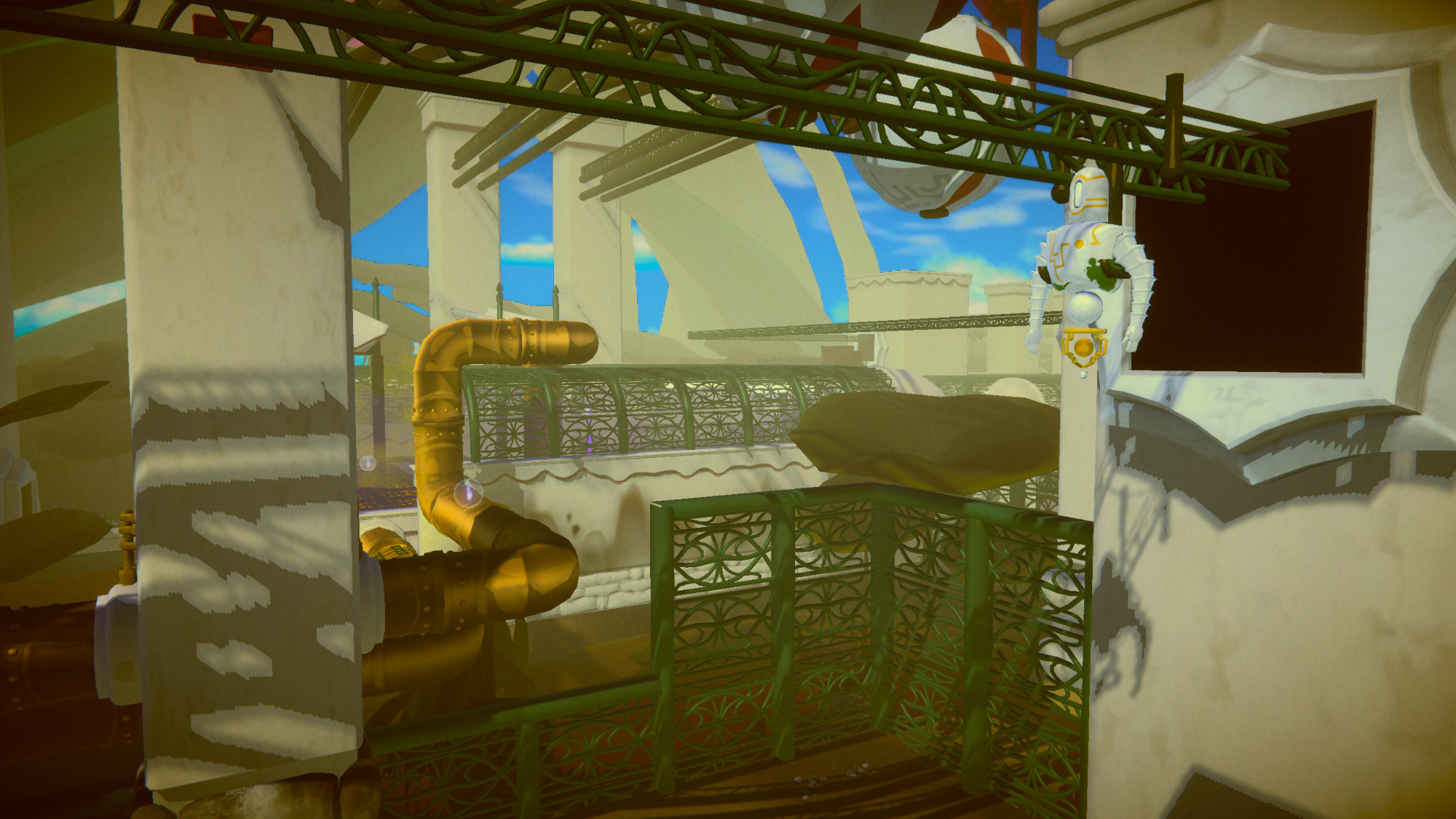 As the main character of the game, you have to explore the beautiful nature-filled world on the back of the giant whale you live on. The player's goal is to uncover the mysteries of the factory and the conspiracy surrounding the whale's impending death. As the game progresses, the player unlocks five skills that he can use to overcome increasingly complex puzzles and parkour sections. There are also NPCs in the world with which the player can interact to find out more about the world's history.